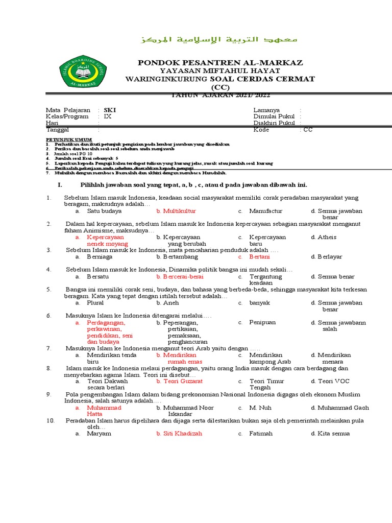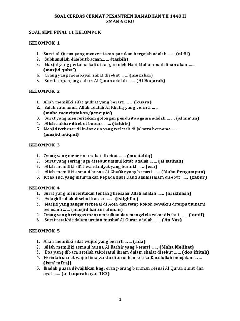Soal Cerdas Cermat Pesantren / Final Cerdas Cermat Putra Merebutkan Tiket Cc Gabungan Pa Pi Pondok Pesantren Darul Huda Mayak : We did not find results for: